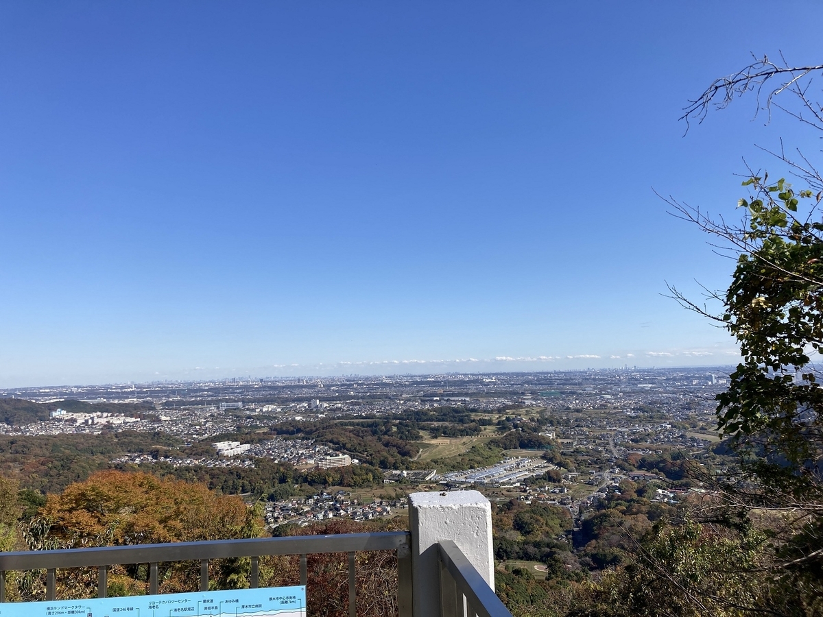 30分ほど登りまして頂上の展望台からの東方面景色、良い天気で遠くスカイツリーが見えました。